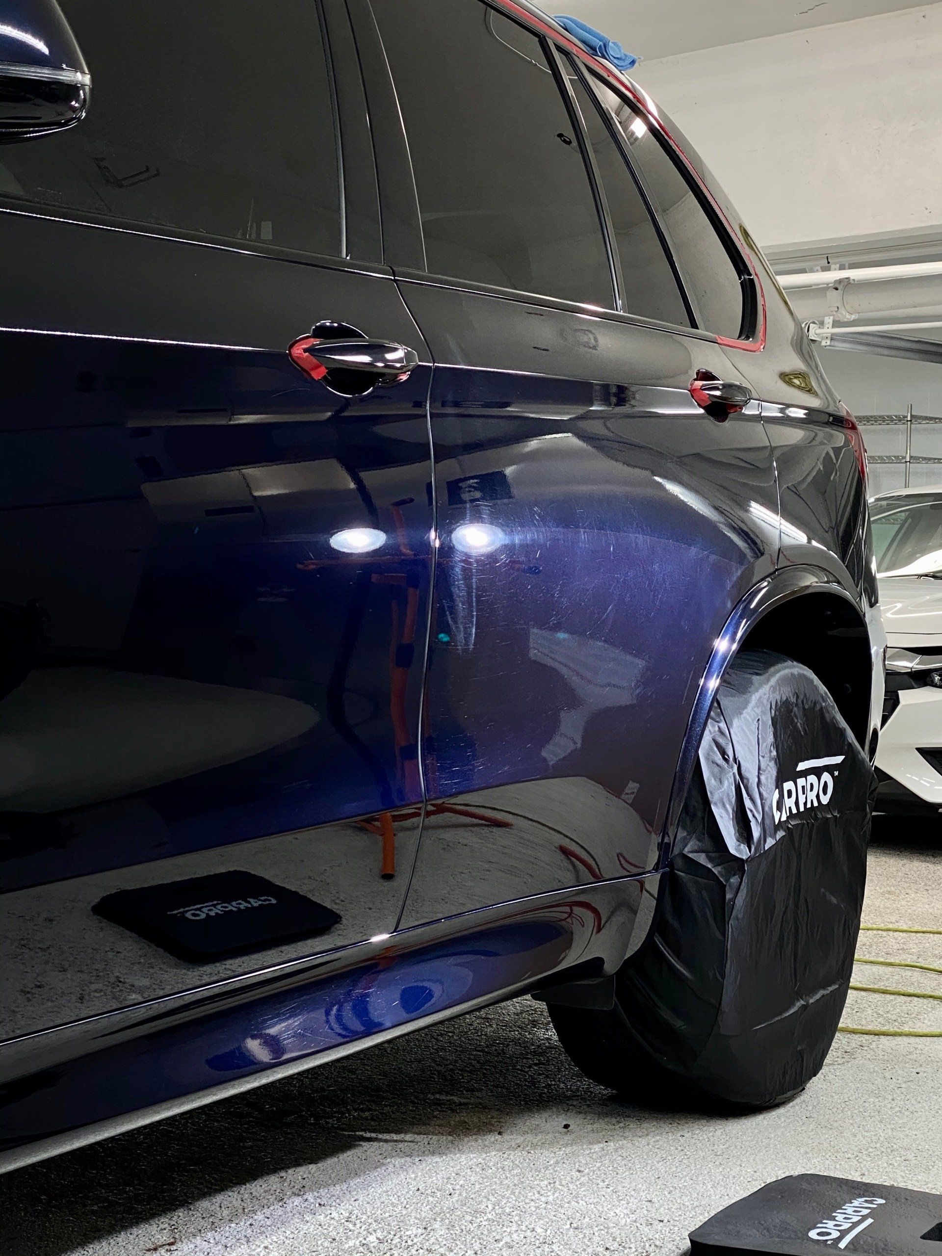 We took our client’s recently acquired X5 and removed 5 years worth of damage from poor washing techniques and neglect. Paint correction allows you to see the true depth and color of your vehicle’s paintwork, and this BMW project was a perfect example of that.