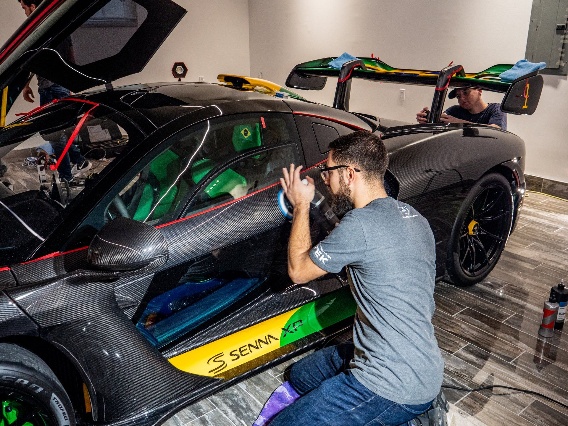 This unique vehicle received a complete paint correction before being fully covered in STEK DYNOshield front to back, top to bottom. The front end and high impact areas were even wrapped twice! Everything on the car was coated in CQuartz Finest Reserve as well for easy maintenance and superior gloss retention.